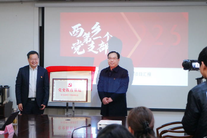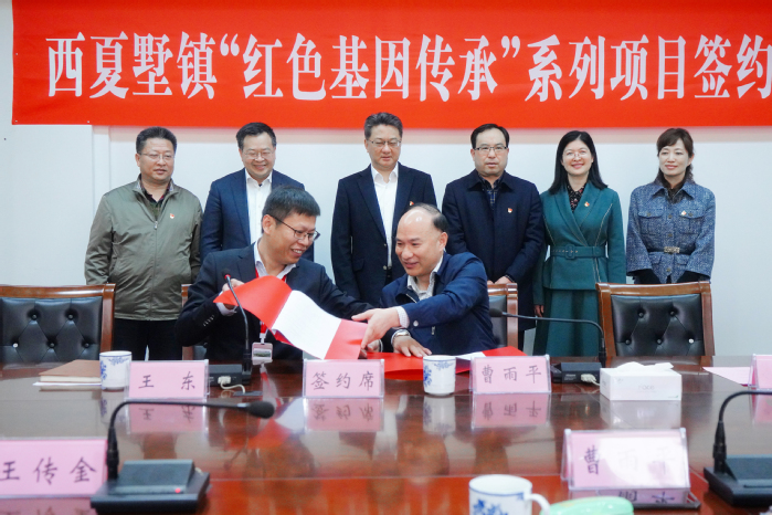成立于1926年的中共西夏墅党支部是常武地区最早成立的3个党支部之一,西乡第一个党支部,为常武地区解放事业作出了卓越贡献。从这里走出了烈士131位,其中正连级以上干部烈士31位,在全国实属罕见。签约仪式上,王东汇报了“红色基因传承”系列项目的主要内容。其中包括西夏墅红色基因谱系研究、新北区第一党支部专题片拍摄、恽雨棠人物传记创作、革命歌曲创作、新北区第一党支部旧址展示陈列设计等五个子项目。随后,曹雨平、王东共同签署《西夏墅镇“红色基因传承”系列项目委托协议书》。王传金,孙泽阳共同为“常州工学院党史教育基地”揭牌。双方精诚携手深挖西夏墅红色文化资源,传承红色基因、擦亮“红”的底色。