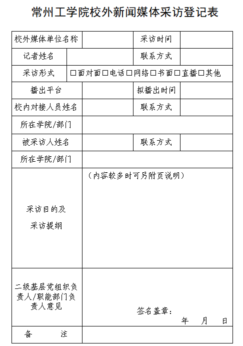 常州工学院校外新闻媒体采访登记表