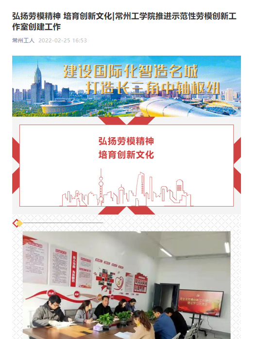近年来,常州工学院以深入创建示范性劳模创新工作室为抓手,注重弘扬劳模精神,积极发挥劳模示范引领作用,培育爱岗敬业、甘于奉献、昂扬向上的高校职工文化,培养更多的知识型、技能型、创新型高校教职工。