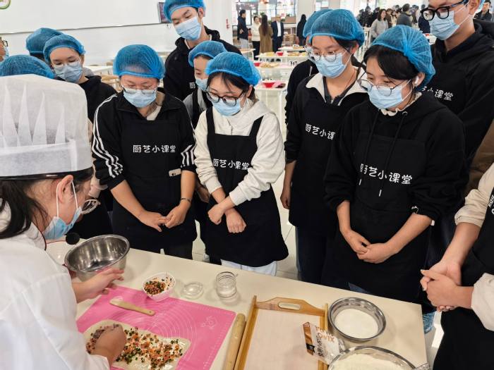 “食以载道,厨以育人”。常州工学院将食堂打造为“生活思政”的重要阵地,让饮食文化成为育人的“活教材”。结合春分、秋分等节气,推出时令美食体验活动,让学生在品尝春笋、蟹黄的同时,感受中华优秀传统文化的魅力;“校园文化美食节”汇聚各地风味,成为传播地域文化、促进交流的平台。在勤俭节约教育中,学校设立“光盘行动”志愿服务岗,通过“光盘打卡”“光盘有礼”等互动形式,让珍惜粮食成为校园新风尚,日均餐厨垃圾减少约30%,实现美德教育日常化;“劳育+食育”实践课更是独具特色,厨艺小课堂上,学生们亲手学习烹饪技巧,在择菜、切菜、炒菜的过程中,培养劳动意识、提升动手能力,实现“以劳树德、以劳增智”。