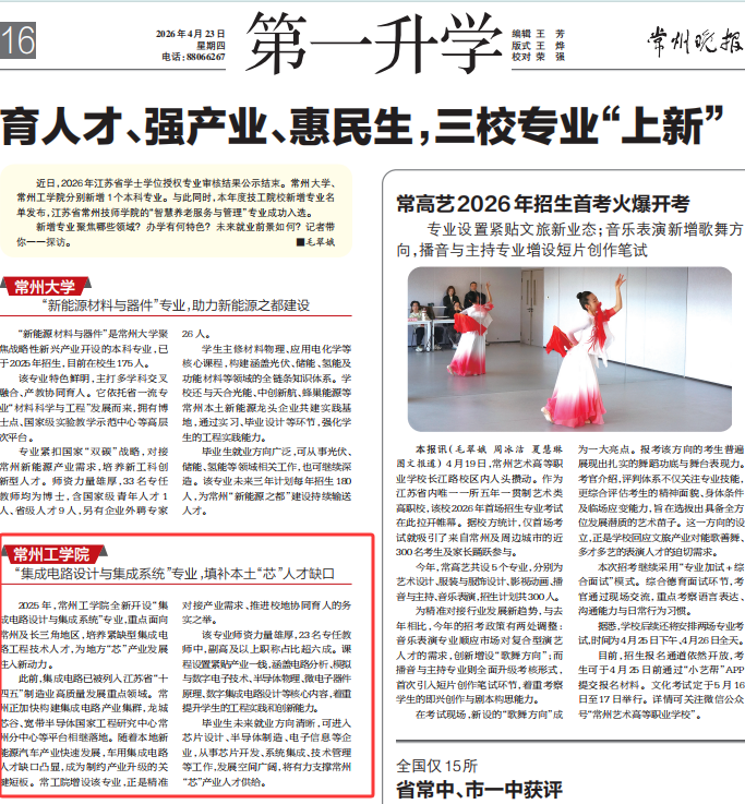 20260423 常州晚报 常州工学院:“集成电路设计与集成系统”专业,填补本土“芯”人才缺口.pdf